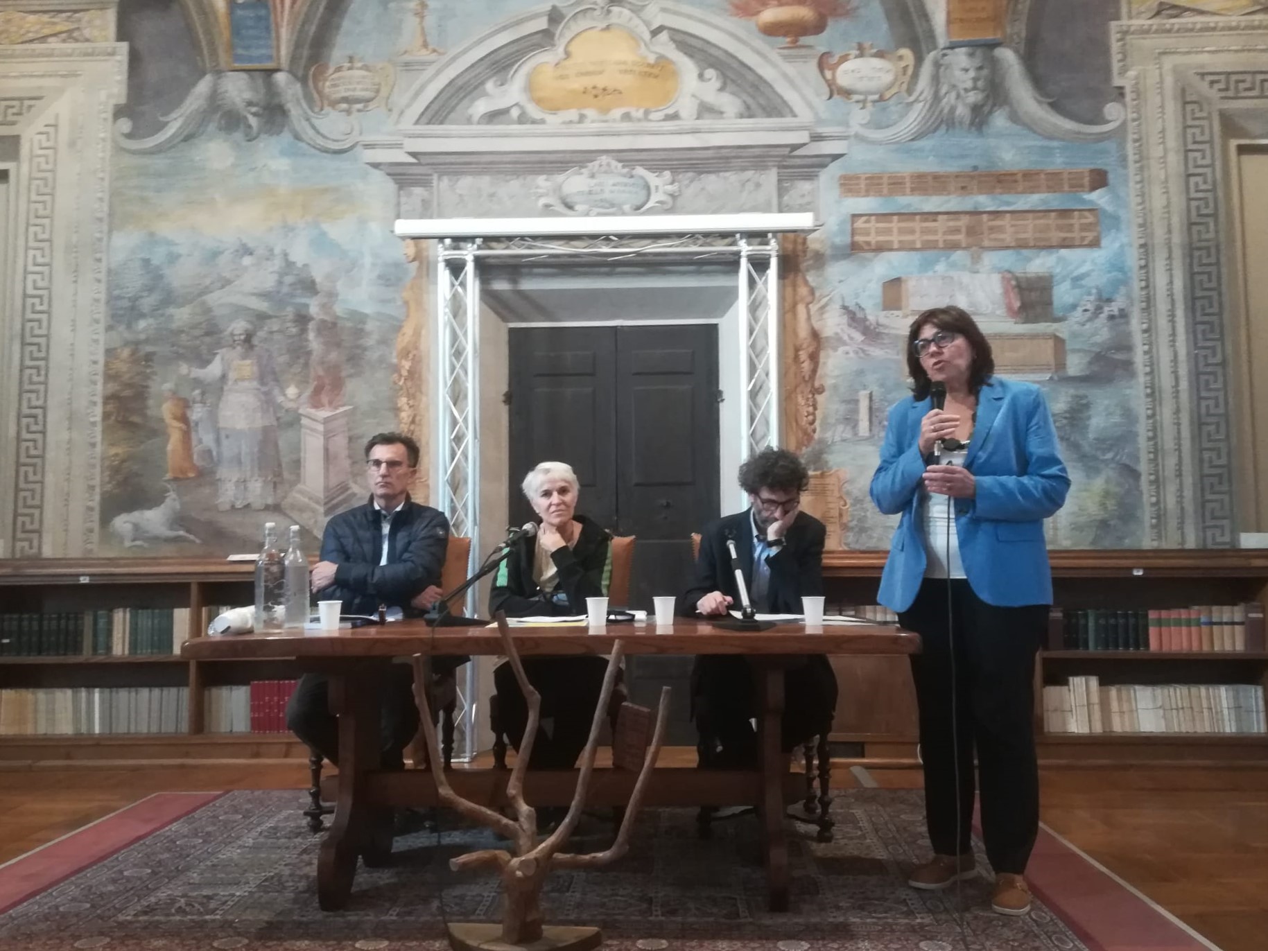 Rettore dell’Università degli Studi di Parma, Paolo Martelli, Angelo Vibi, Vice Presidente di Fondazione Monteparma e Daria Jacopozzi, Assessora con delega alla Pace del Comune di Parma