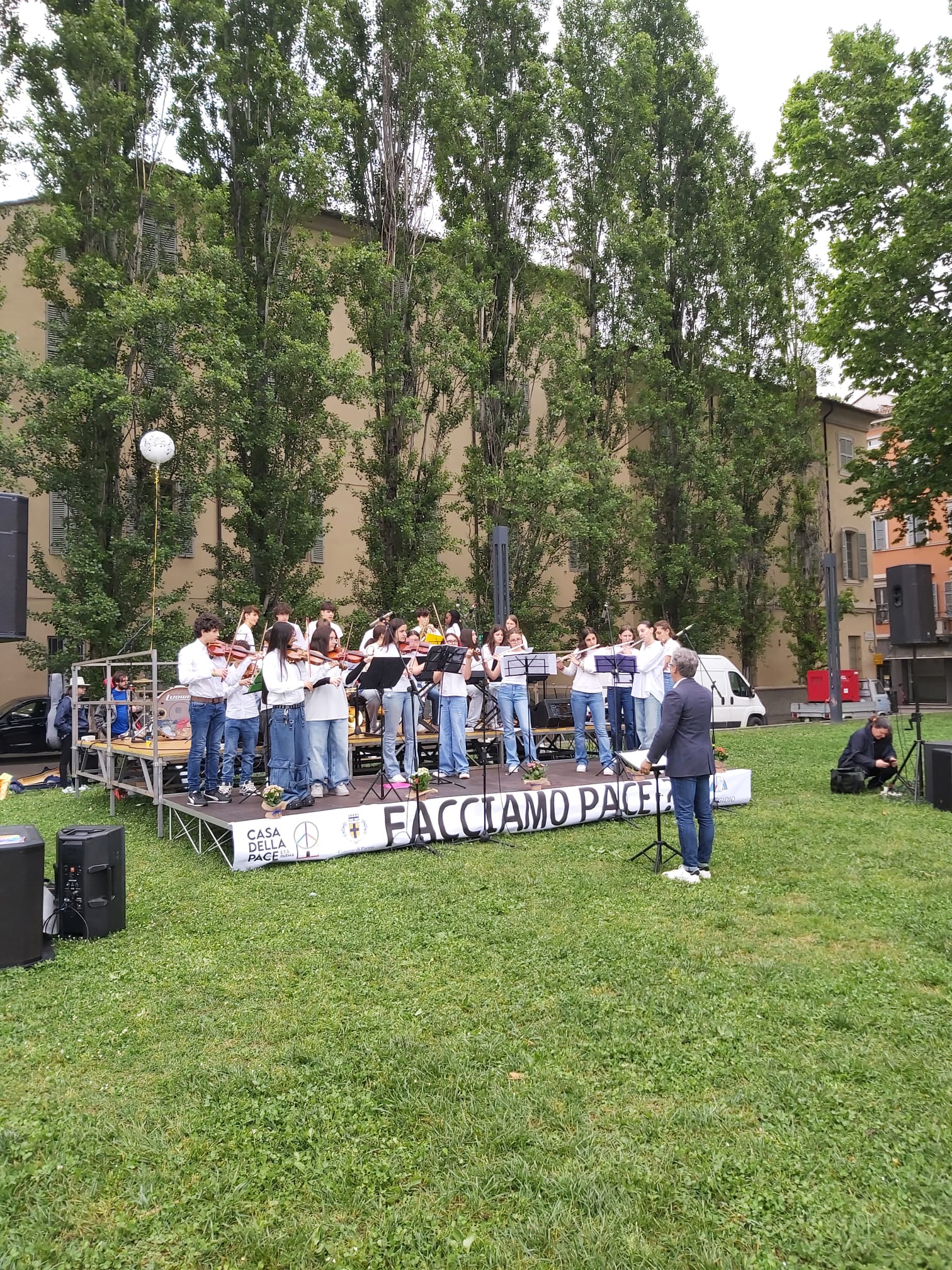 Ad animare l’evento hanno contribuito: il coro e l’orchestra della scuola secondaria di primo grado I.C. Ferrari, il gruppo vocale OltreCoro, la cooperativa sociale École, il gruppo Donne in Nero Parma, Agesci – Settore Giustizia, Pace e Nonviolenza.