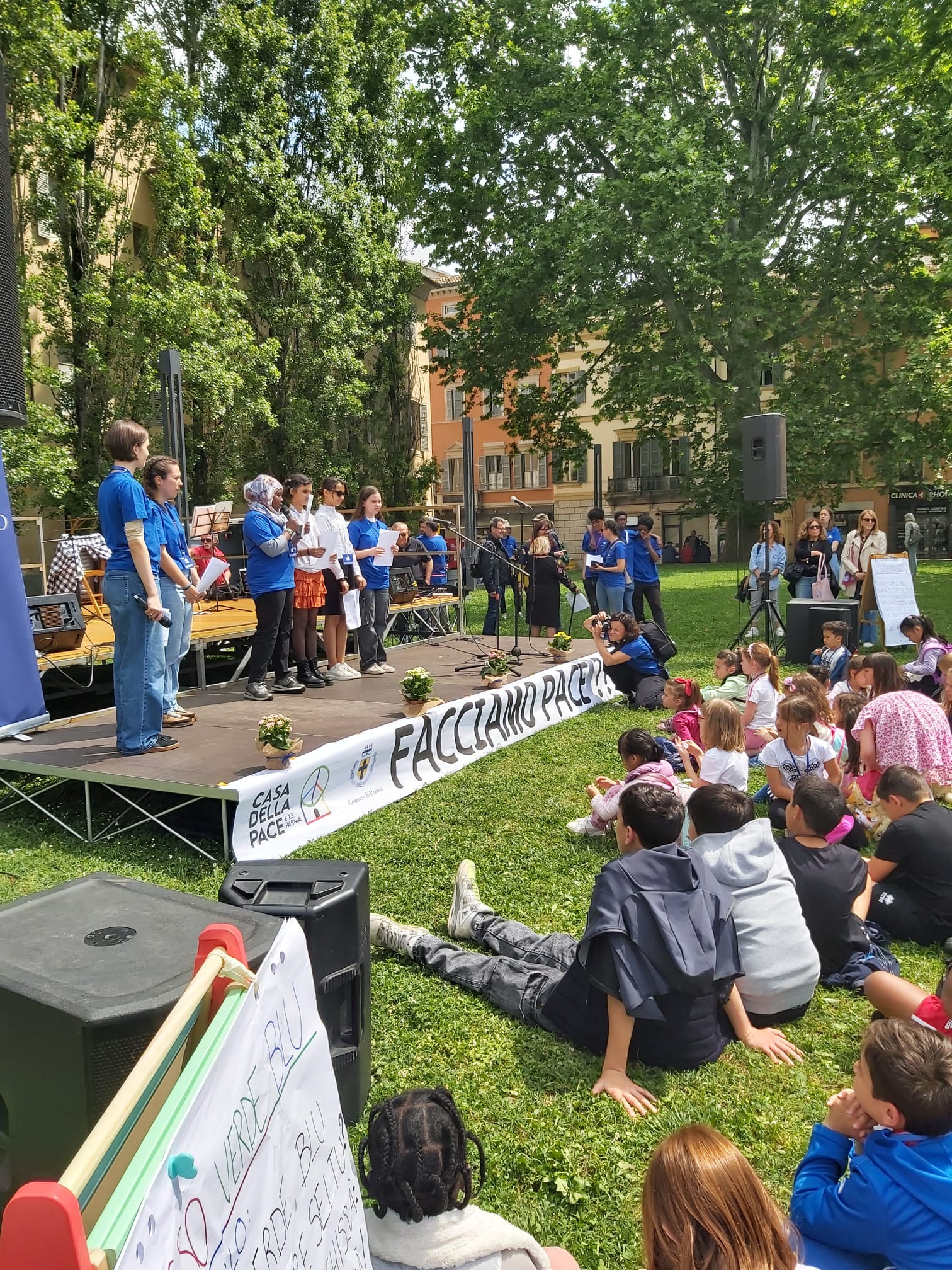 Ad animare l’evento hanno contribuito: il coro e l’orchestra della scuola secondaria di primo grado I.C. Ferrari, il gruppo vocale OltreCoro, la cooperativa sociale École, il gruppo Donne in Nero Parma, Agesci – Settore Giustizia, Pace e Nonviolenza.